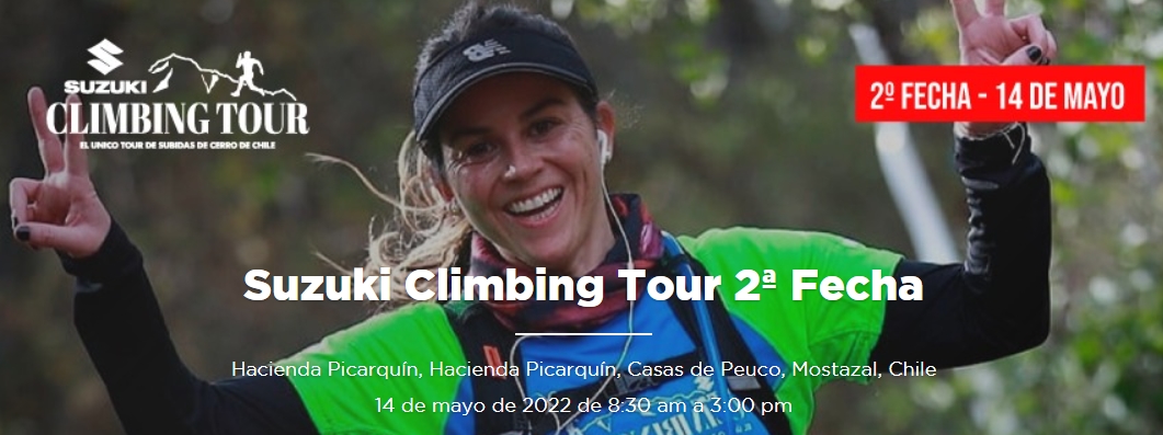 El Suzuki Climbing Tour 2022 ya tiene fin de semana definido para su segunda fecha de este año, el evento se realizará el sábado 14 de mayo en Hacienda Picarquín, San Francisco de Mostazal, y las inscripciones se encuentran disponibles a través del portal WELCU.