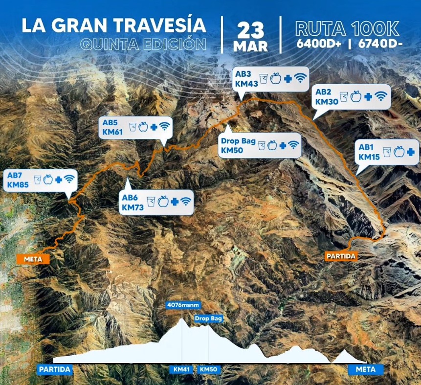 Latitud Sur Expedition dió luz verde a la 5° edición de «La Gran Travesía 100K», evento que se realizará el próximo 23 de marzo y que recorrerá la Cordillera de Los Andes, desde Cajón del Maipo hasta Santiago. La competencia ofrecerá tres opciones para participar en un circuito con más de 6.000 metros de desnivel positivo.
