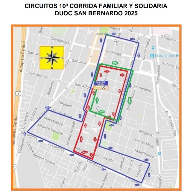 Enmarcado en el concepto Duoc UC Puertas Abiertas se realiza la 10° Corrida Familiar Solidaria Sede San Bernardo el domingo 9 de noviembre, competencia running que contempla circuitos de 2, 3.5, y 7 kilómetros desde la puerta principal de Duoc San Bernardo, ubicado en calle Freire 857.