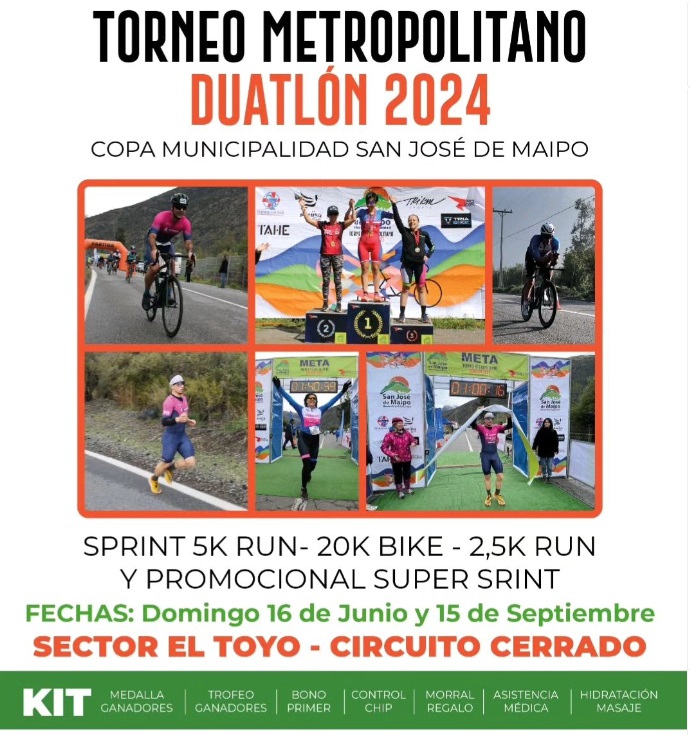 Por tercer año consecutivo se realiza el Torneo Metropolitano de Duatlón en San José de Maipo, evento organizado por la municipalidad de la comuna, y producido por PromoDeportes. La competencia que contempla disciplinas de running + bike, se llevará a cabo el 16 de junio y 15 de septiembre.