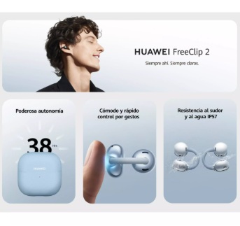 La segunda generación de los audífonos de ajuste abierto de la marca presenta una notable mejora en la calidad acústica, duplicando su capacidad de volumen. También, uno de sus puntos más fuertes es la autonomía de la batería, que ahora alcanza hasta 38 horas con una sola carga. Esta duración supera a la de sus predecesores, los Free Clip de primera generación, y a otros modelos de la marca, como los Free Buds Pro 4.