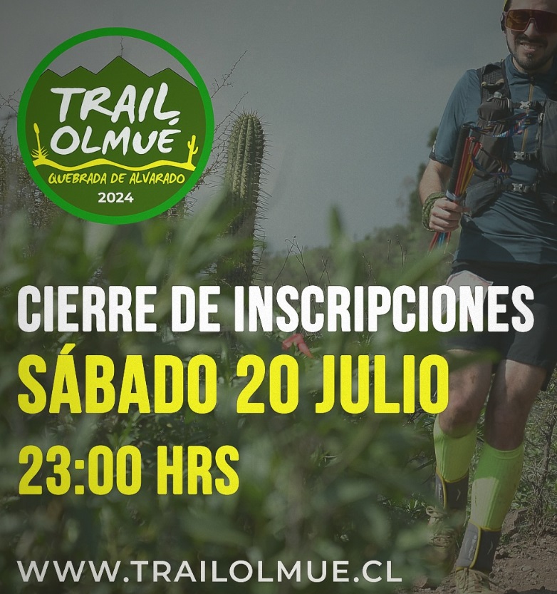 El Trail Olmué 2024 se llevará a cabo el domingo 4 de agosto en la comunidad de Quebrada de Alvarado, desde las 09:00 horas. Contará con ambulancias, personal de salud y rescate, además de guardias. Aquellos corredores que deseen participar podrán hacerlo hasta el sábado 20 de julio, inscribiéndose a través del sitio web www.trailolmue.cl.